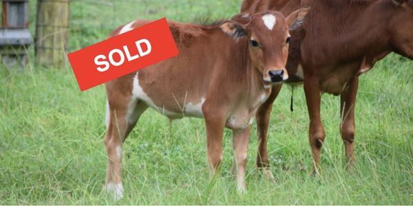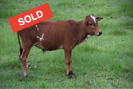 If you're looking for a new heifer, this could be the one. Rocking her hard red frame with a bright white paint spill across her hips, she's quite the looker. Her dad is a black and white spotted bull so the sky is the limit on what this heifer's calves will look like. Shania is a solid choice for anyone in need of a great new heifer.
